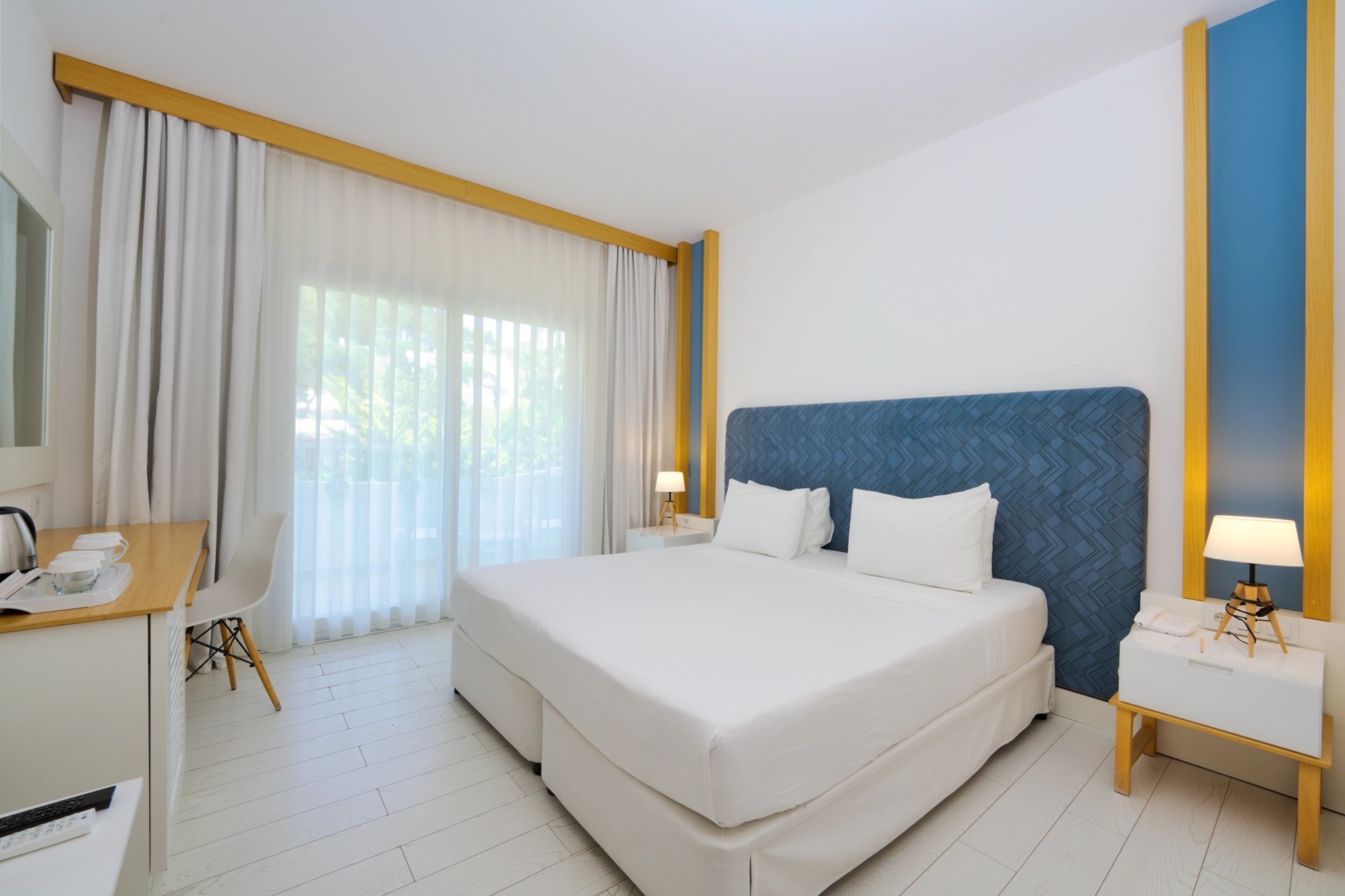 Стандартные номера предлагают идеальное размещение для пары или небольшой семьи. Просторные и удобные, эти номера оборудованы двумя односпальными кроватями или одной двуспальной кроватью, создавая комфортную атмосферу для отдыха. Каждый номер имеет французский балкон или полностью оборудованную террасу, что позволяет гостям наслаждаться свежим воздухом. Современный дизайн и тщательно подобранная мебель создают обстановку, сочетающую элегантность и комфорт.